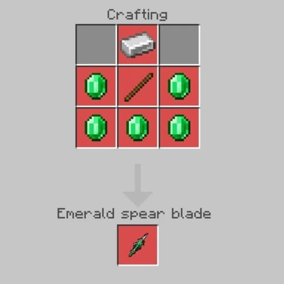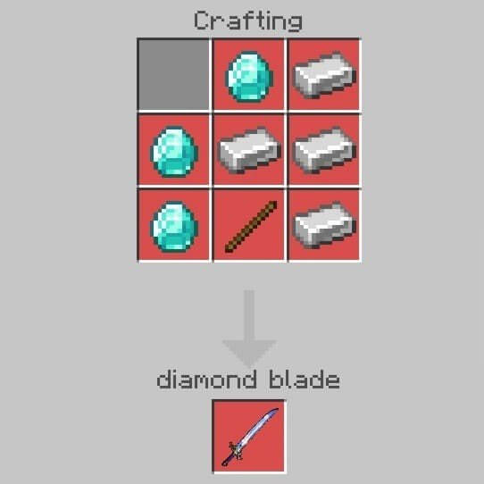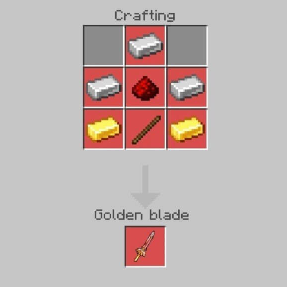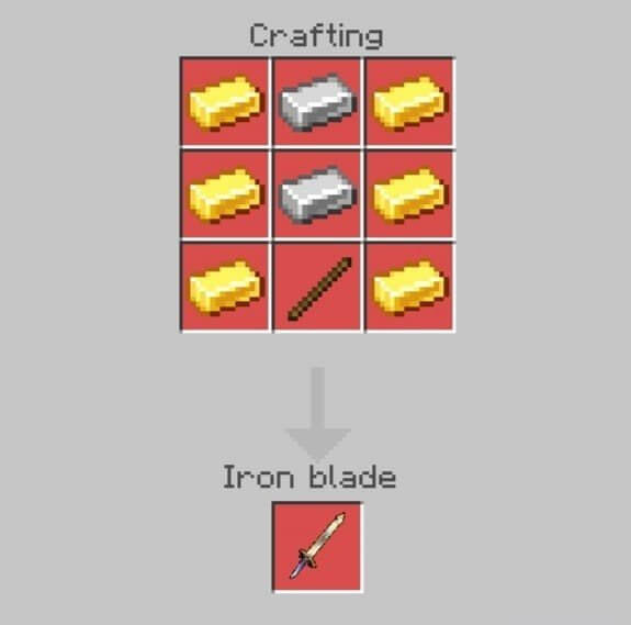 Crafting for this mod remains traditional and is performed according to all the rules of Minecraft. You can create new fantastic weapons using the following recipes: