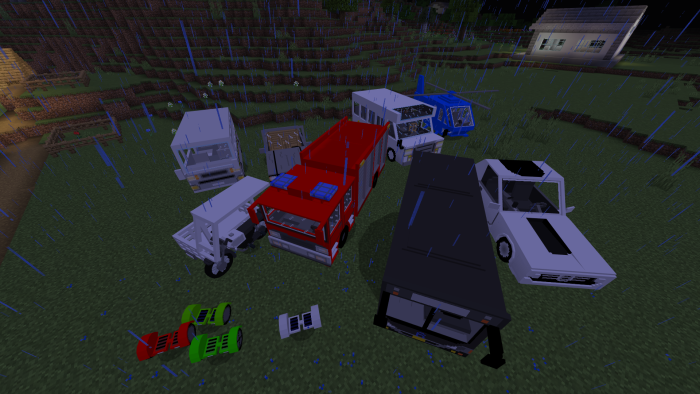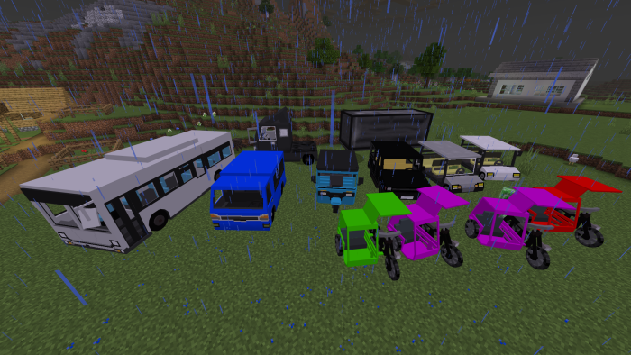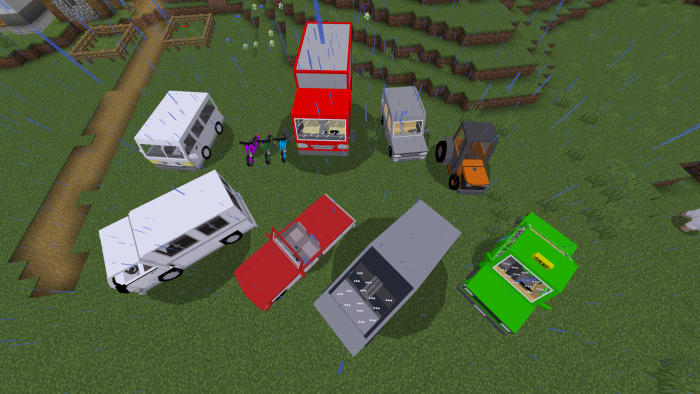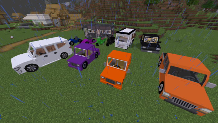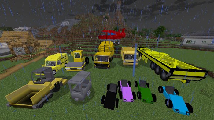 The collection is already extensive, but why not diversify the sandbox even more? Mod-pack "Cars, Trucks and Motorcycles" (Simple Vehicles Addon Lite Version) will add to Minecraft a set of 100 types of vehicles that can move both on land and even on water.
