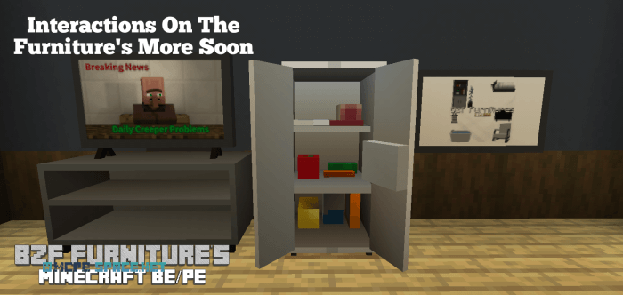 This add-on will diversify your interior by introducing more than 90 variants of different furniture in Minecraft Bedrock ! Both classic and modern furniture will appear in the game. Despite the fact that this is only the first version of the addon, the addon can give you freedom in interior design. Even more furniture will be added in the upcoming updates!