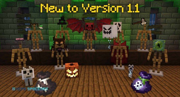 In version 1.1, Halloween-themed costumes (armor) and pets have been added in addition to existing decorations. All players can now add a spooky pet or two to their Halloween decorations. There are currently 10 costumes and 4 pets available. All of these can be obtained from their respective Treat Bags, which can be purchased from the seasonal merchant.