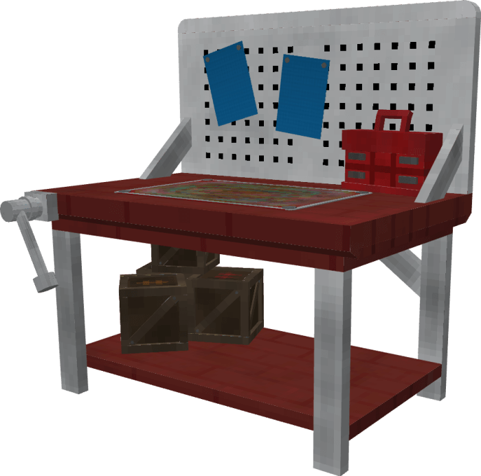 The workbench in XLites Modern Furniture is used for crafting crates (blocks) of wood, which will be processed on the stone cutter to make any furniture. Workbench is indispensable, and therefore even before the start of production it is desirable to prepare a personal workshop in advance - prepare a place for crafting, chests for resources and signs with pointers.