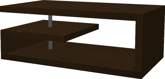 An alternative to coffee and coffee tables: a low cabinet with drawers that slide out when you interact with them.