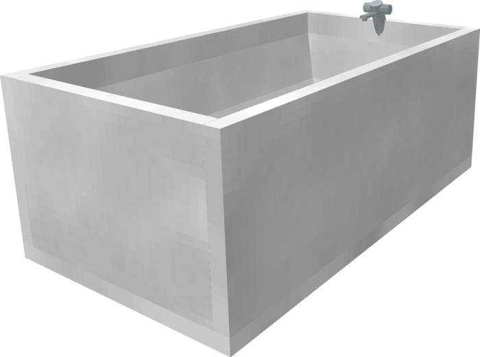 Detailed bathtub that takes up to 1.5 blocks in height and 3 in length. Versatile, painted silver and blends with any color floor and walls.