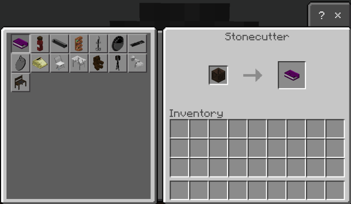 After using the blueprints on the workbench, a special block (box) will be added to the inventory, which can be cut on the stone cutter. And from one block (box) you can make different items - tables, chairs, clocks or toys - it all depends directly on the chosen recipe.
