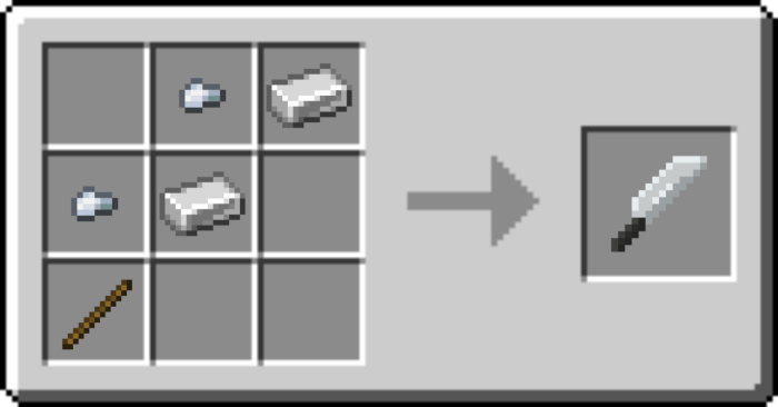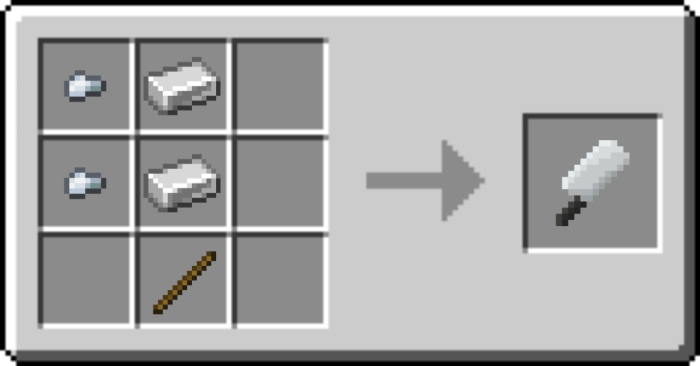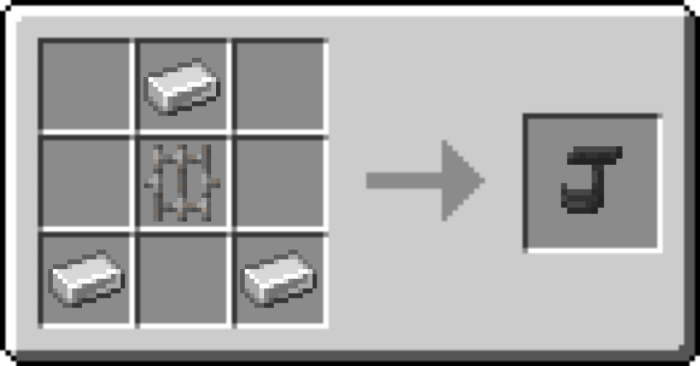 The recipe for making it is fairly predictable: a stick, a few pieces of iron and some ingots.