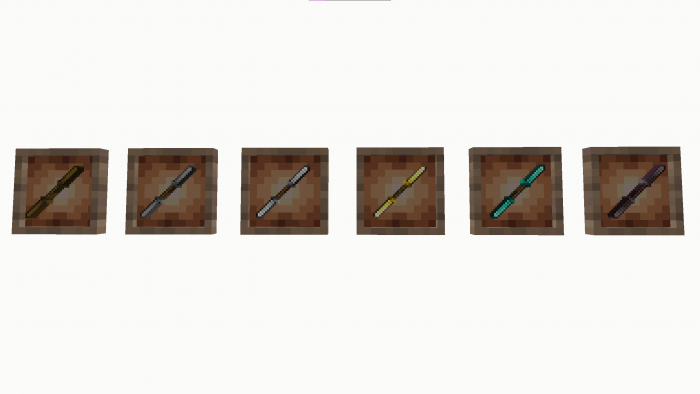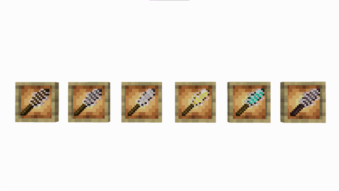 Spears are suitable for melee combat (they repel enemies and cause bleeding) and for throwing at targets up to 20 blocks away. Using a spear as a throwing weapon makes it several times easier to inflict a lot of damage - in flight, such a precious object is instantly transformed into a deadly projectile.