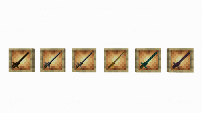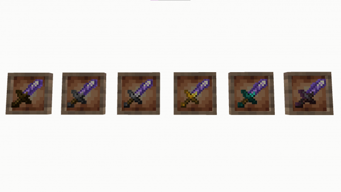An experimental weapon forged with a special amethyst tip. Visually, the sword is more suited to certain displays of medieval equipment, but in reality, the amethyst blade stays sharp longer and loses its durability charges more slowly, which is why it's often used by professional swordsmen in Minecraft.