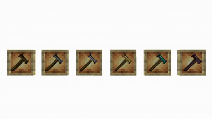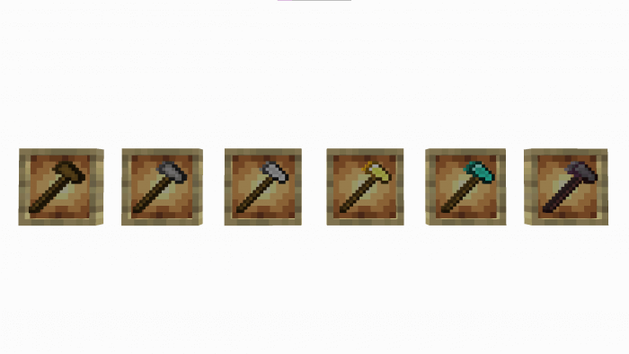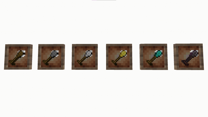 Hammers are the preferred tools of the handyman, who must constantly adapt to the changing pace of life. This adaptation is also reflected in hammers: by using this tool, players will be able to transform numerous blocks into new types of resource. The same blocks of cobblestone will become stone. Curious? This type of conversion works in many situations and saves a lot of time when drawing up a personal settlement.