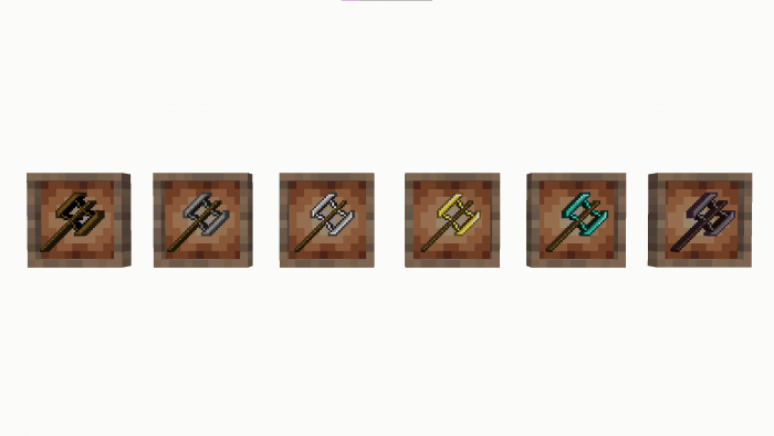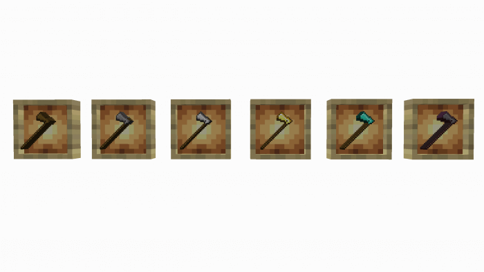 Double-bladed axes are effective both when felling trees (wood extraction speed is multiplied by several times) and when fighting enemies. Axes really cut mobs to pieces.