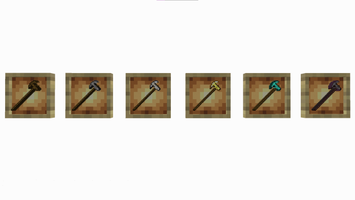 An ancient tool used by Neanderthals in caves and mines to extract stones and additional resources. Although this era has long since been forgotten, the developers of the modification do not prevent the equipment from being used without any restrictions. The main thing is not to forget durability: these tools fall apart too quickly.