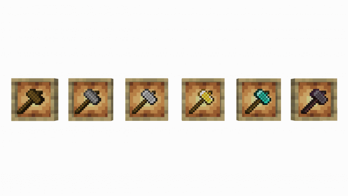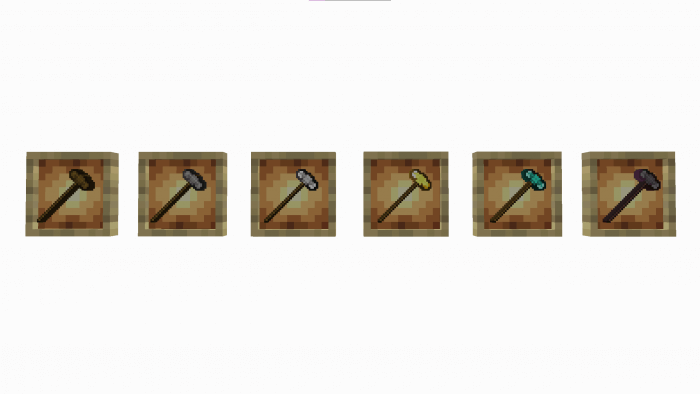 - Hammer. Crushes all blocks (e.g. turns cobblestones into stone);