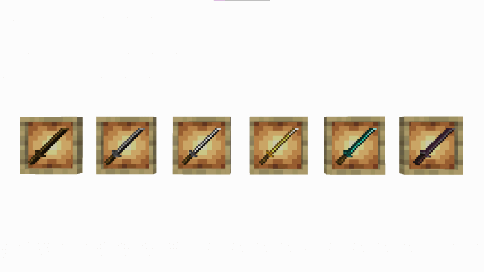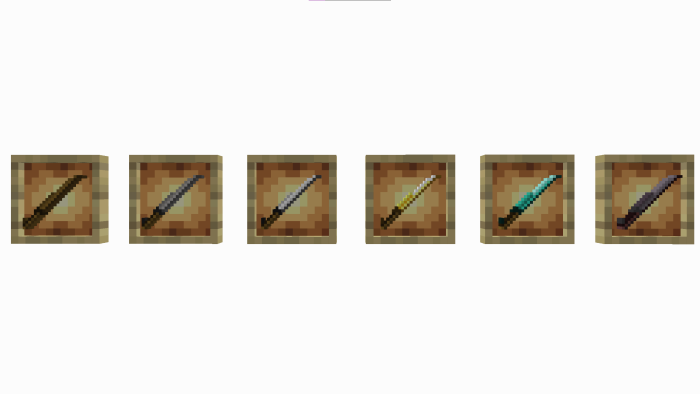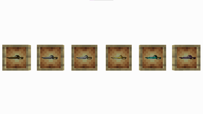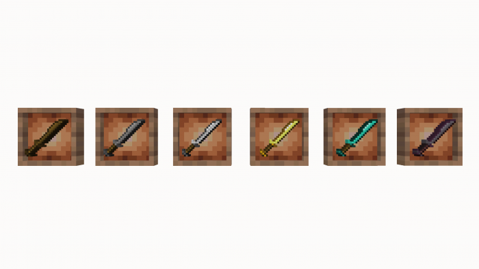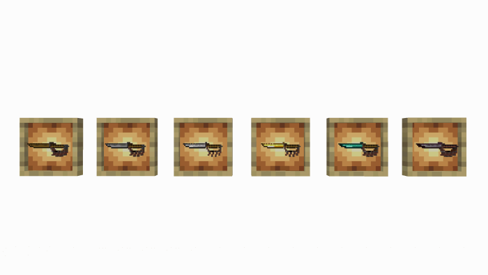 What's more, depending on the material used in the manufacturing process (wood, cobblestone, iron, gold, diamond and nerite), you'll obtain weapons or tools whose characteristics depend on you. For example, gold swords, as in the original Minecraft, aren't too strong, and diamond - rare, but at the same time strong and really razor-sharp. But everything is in order.