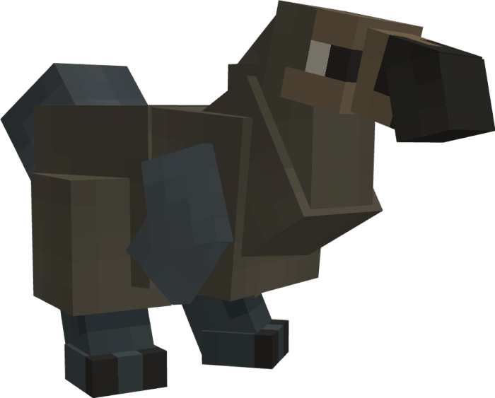 A non-standard version of the classic Moshops, which visually and technically resembles the Minecraft dog. The creature is easy to interact with - you just need the right resources to tame it.