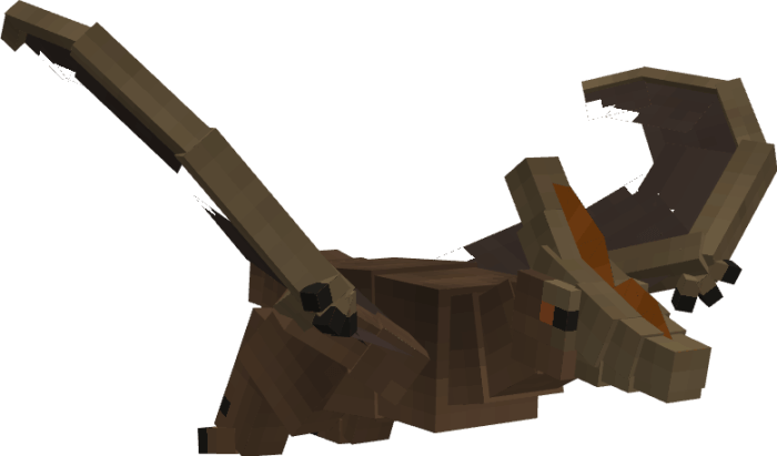 A discreet, almost defenseless bird, the Dodo is used in modification to collect ingredients for crafts and as a kind of warming device for eggs that haven't yet hatched.