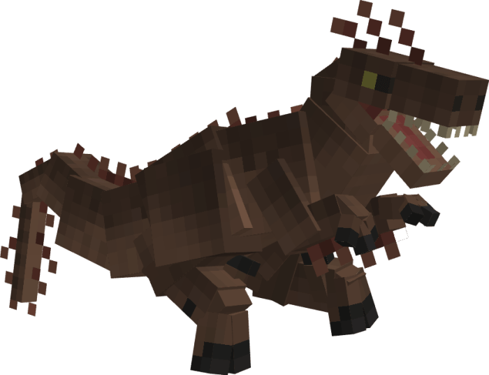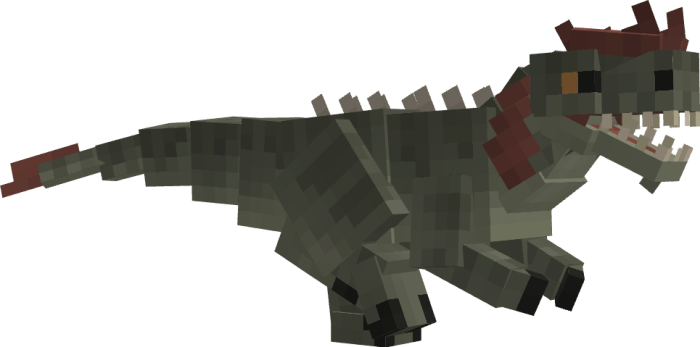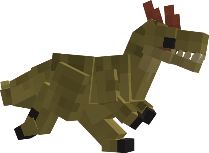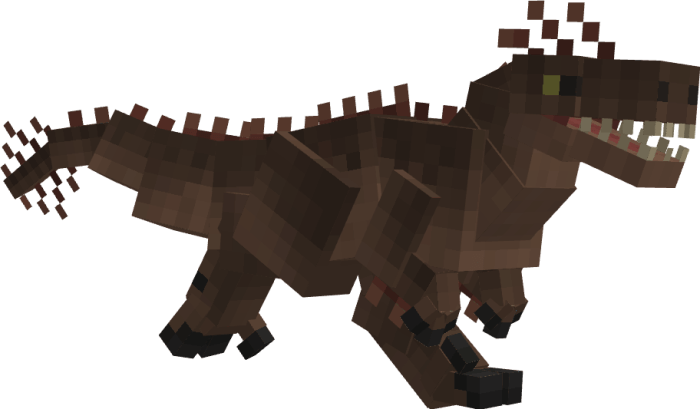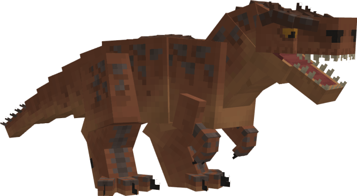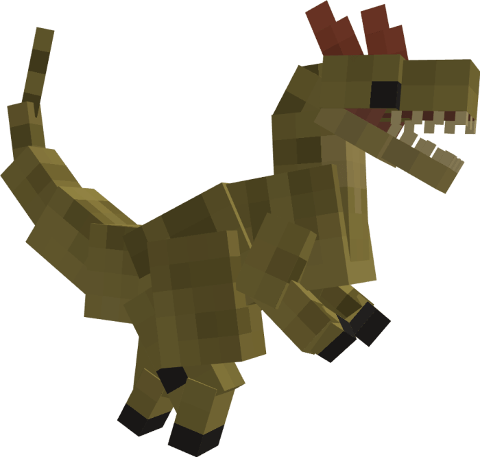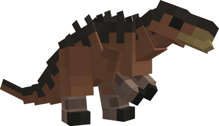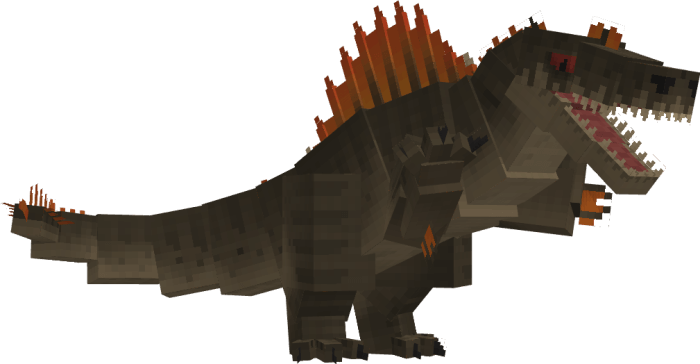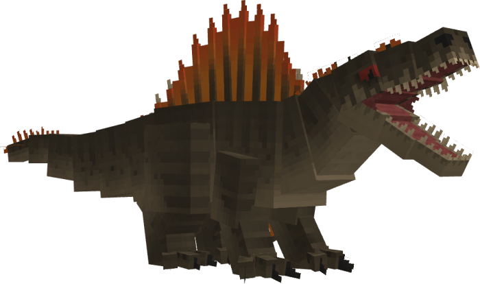 A versatile dinosaur that can move quickly on land and swim deep underwater almost without interruption. Due to its nasty nature, Spinosaurus is hard to get along with - even in its tamed state, the predator often pounces on friendly and neutral mobs.