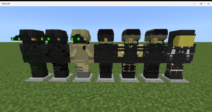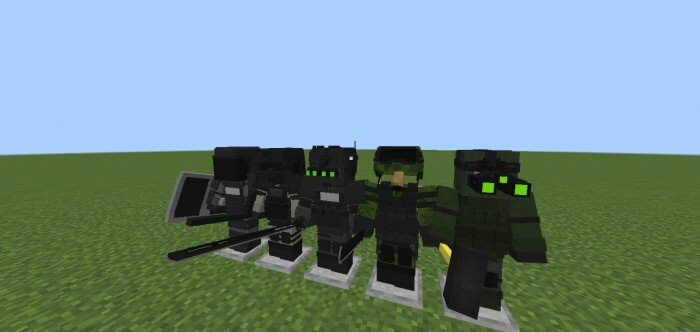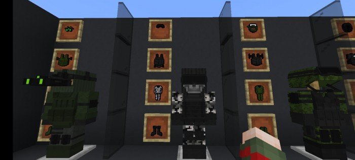 The mod pack contains 22 sets of armor, 4 types of melee weapons, as well as several pass-hacks associated with Hollywood blockbusters and military-tactical shooters such as Call of Duty and Splinter Cell. For the time being, the developers are only allowing the use of innovations in the creative mode - recipes for crafting will probably appear later.