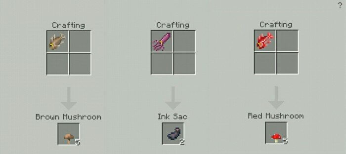The developers of the modification suggest using caught fish immediately for crafting - the same mushrooms or bags with ink.