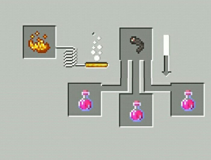 And if you add a leech (which has a 13% chance of being found in the brackish waters of warm biomes) to an alchemical vial, you'll immediately have healing potions in your inventory with instant life-restoring effects.
