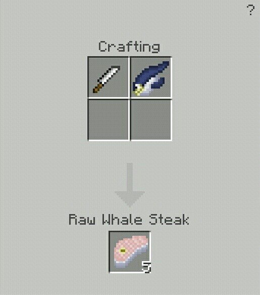 A huge piece of pink meat that instantly re-inflates 5 hearts on the hunger scale. It's hard to carve up such an impressive carcass, so you can't do without a sharp knife.