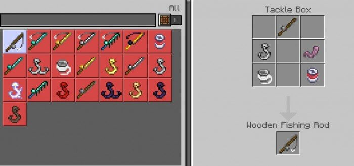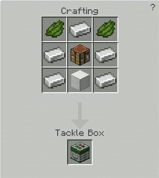 The box is made from iron ingots and a workbench, and is in almost constant use. What's more, this modification will change the standard fishing rod crafting system and let you experiment with quite a few things!