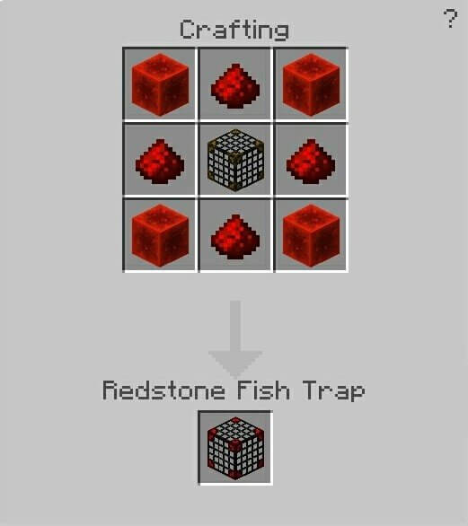 The final way to obtain a catch is to use a red stone trap. This design "works" extremely fast and instantly attracts edible trophies to land.