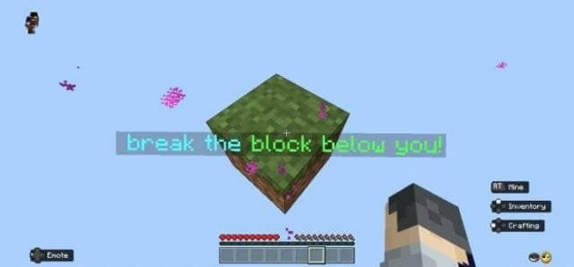 The map starts the same way as other quests of this type - you will find yourself on just one block. You will need to break it to expand the game space, move from level to level and get valuable items. You will have to try your best to intelligently plan your survival with very limited resources.