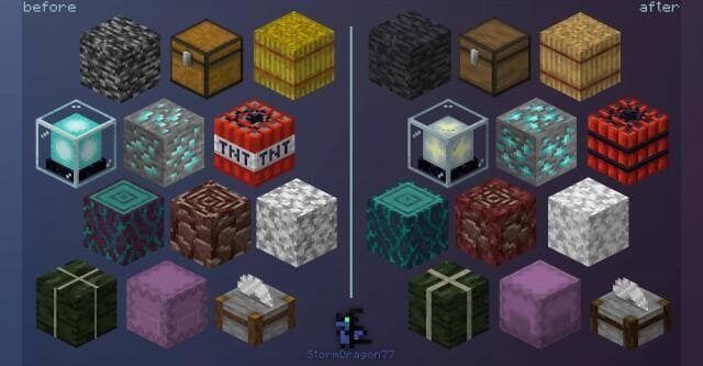 A large collection of Stormilla textures will allow you to update and improve a huge number of game items in Minecraft. At the same time, the textures do not change the usual block style, preserving the original atmosphere of the game. You will get updated and improved models for the blocks themselves, weapons, mobs and items - the improved design will change the experience of the game world and make it much more pleasant, because the custom models do not contain those bugs and flaws that were in the original ones.
