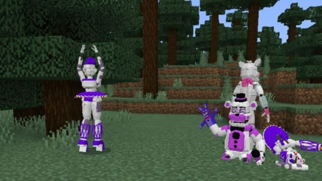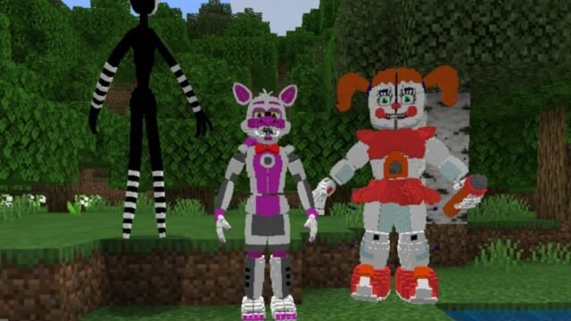 The extensive FNAF mod for Minecraft PE offers the playing person to get acquainted in the Minecraft reality with more than thirty creatures called animatronics.
